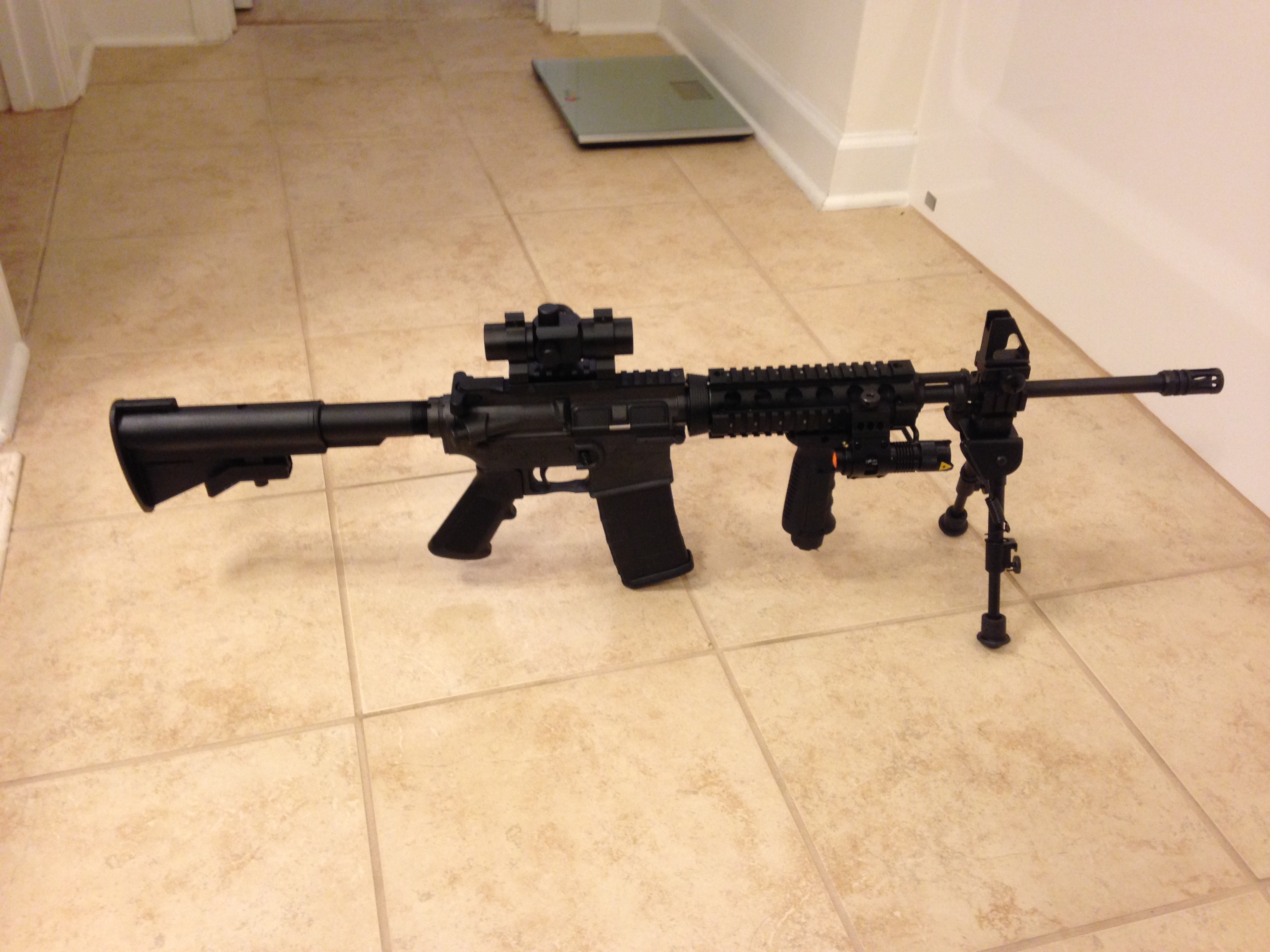 How much do you have invested in that? Looks great, 5.56? Any details are welcome. Lawman's in CLT has the S&W M&P Sportman II with Magpull furniture for 699.99 right now. Trying to figure out if I want to build or buy.
