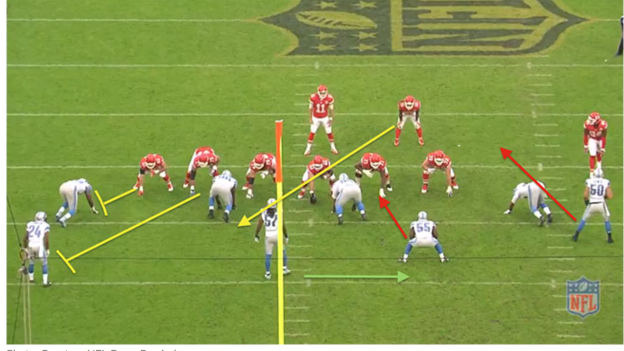 The Chiefs will also pull a guard to the ISO side and run an inside power play that often yields cutback lanes, but the matchup they really want comes with outside zone runs.