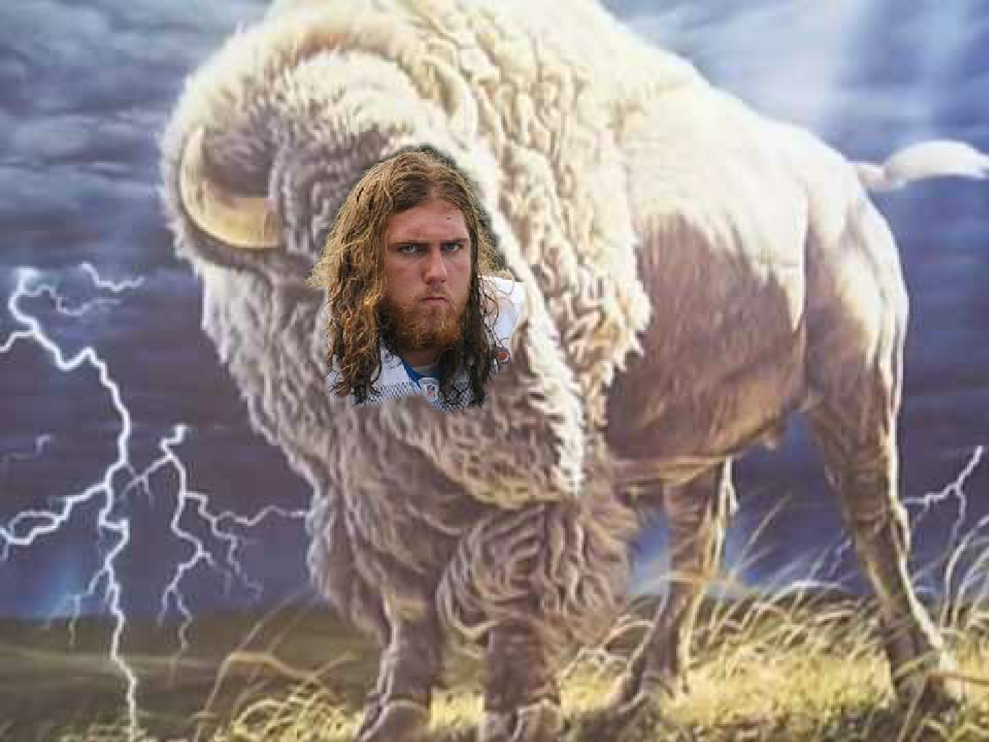 I just pictured an albino buffalo with Norwell's head being chased by Indians.  Now I'm going to have it made into an oil painting