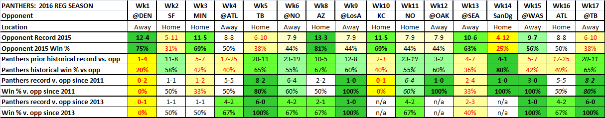 There's a reason the Denver game has a lot of us nervous wrecks this week....  not only does it dredge up all the awful memories of Super Bowl 50 that most of us want to forget, but Denver is our toughest opponent this season in terms of the Panthers historical record against them.  We're only 1 - 4 in the past 21 seasons.