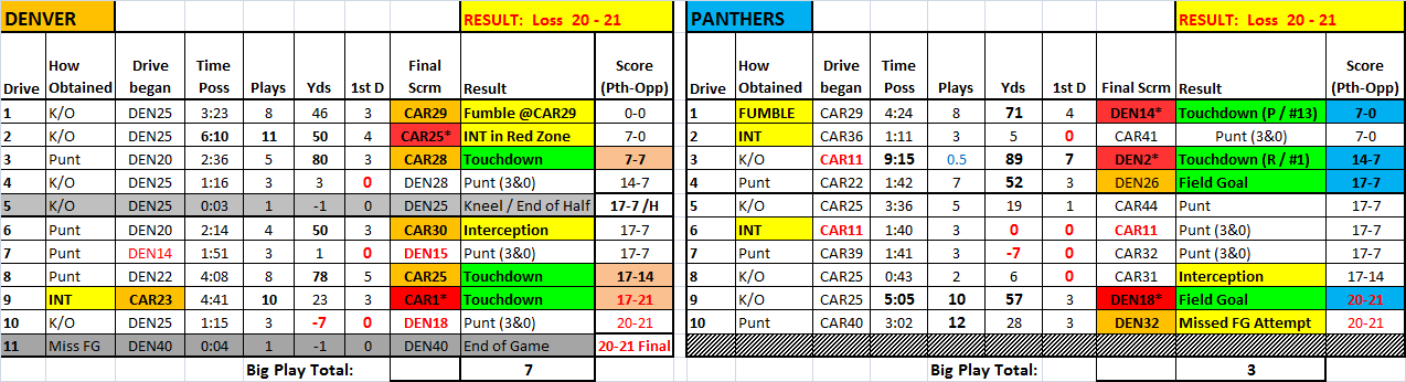 Here are the week 1 Drive Charts for the Panthers 20-21 loss against Denver: