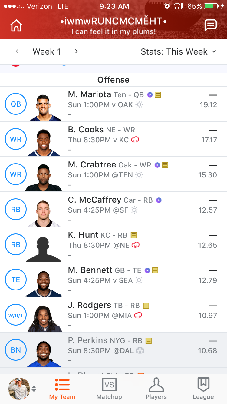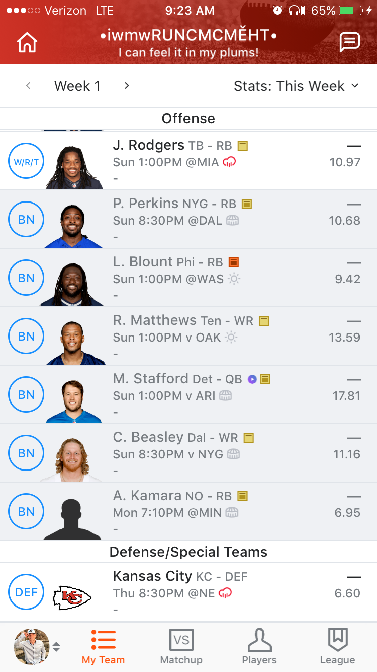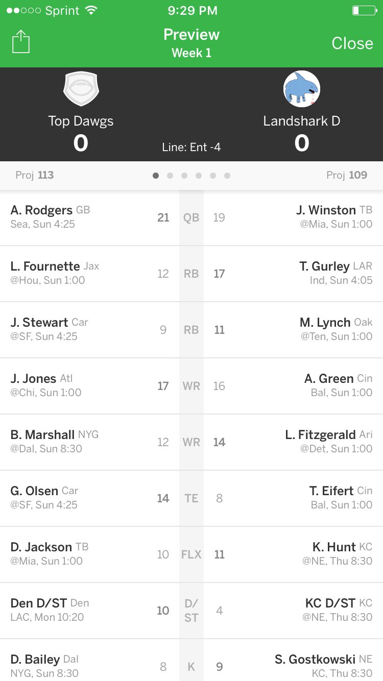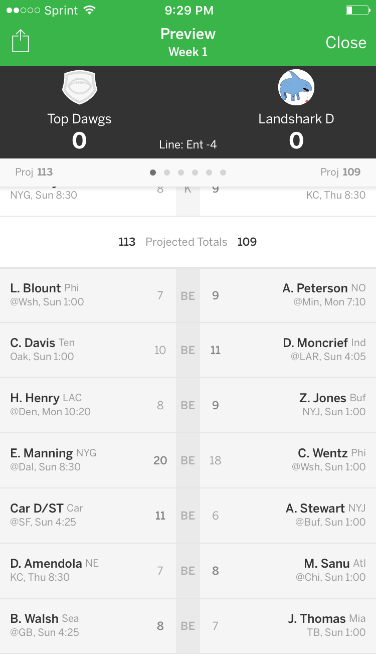 Total Week 1 Fantasy Points: 0.00 112.60 (Projected)