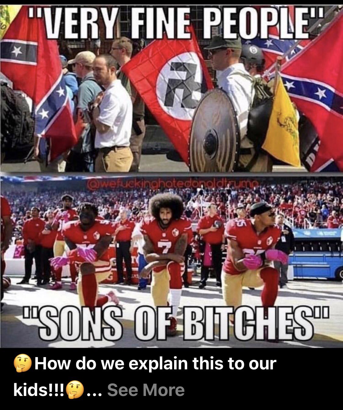 Yes because the Golden calf of Bristol was kneeling to an imaginary man in the sky thanking him for his successes as the Lord cares so much about Americas God given game called football and projecting his Bible logic on the masses vs a man trying to take a stand and bring awareness(As naive as it may have been) to a screwed up situation in our country that actually has tangible weight bearing on society.