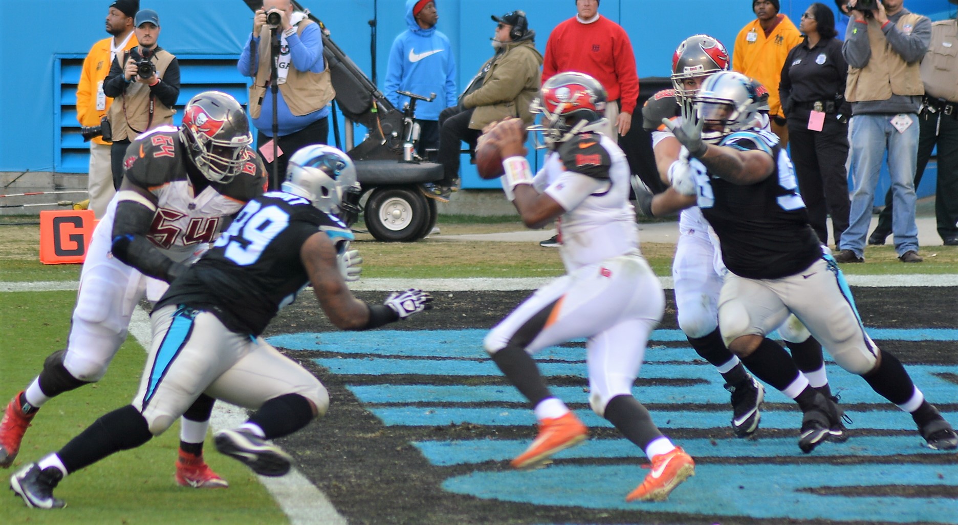 The penalty came seconds after right tackle Caleb Benenoch held defensive end Julius Peppersicon-article-link.gif in the end zone, a call that would have given the Panthers two points via a safety. Even though Lotulelei’s push came after the play, the penalties offset.