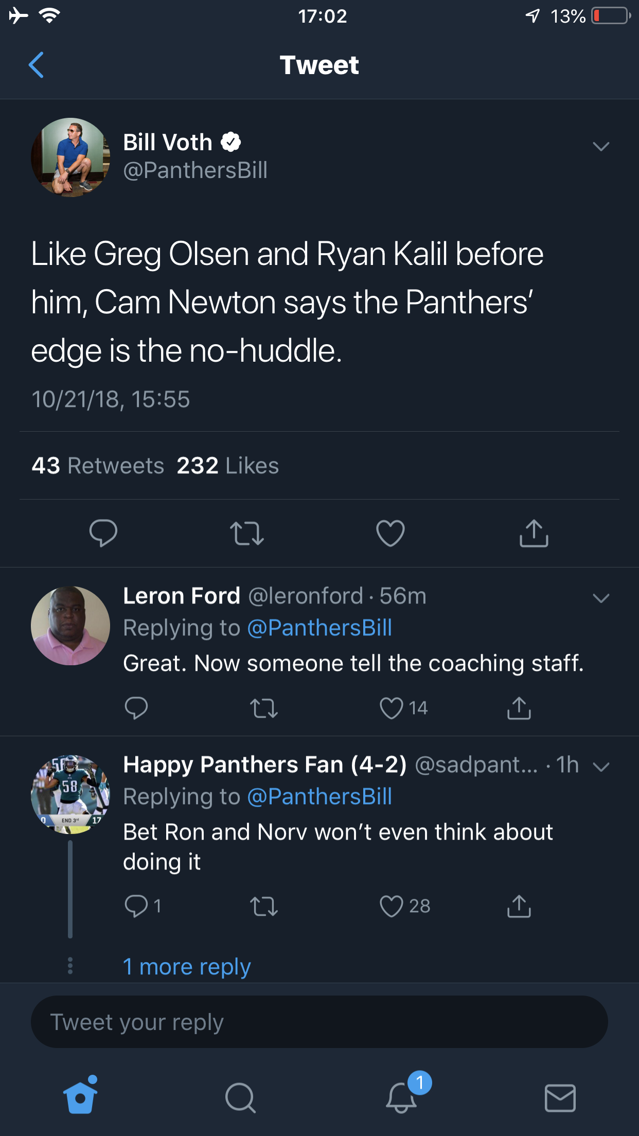 The narrative that Cam was horrible is false. Please stop. Two bad throws in the fist half isn’t horrible. The difference between Cam and every other qb in the league is opportunities. Very few things go right for Cam to set him up for success: poor line play, dropped balls, no separation, etc. So when finally everyone else does their job, and he’s off it gets magnified. No qb is perfect and no qb does more with less.