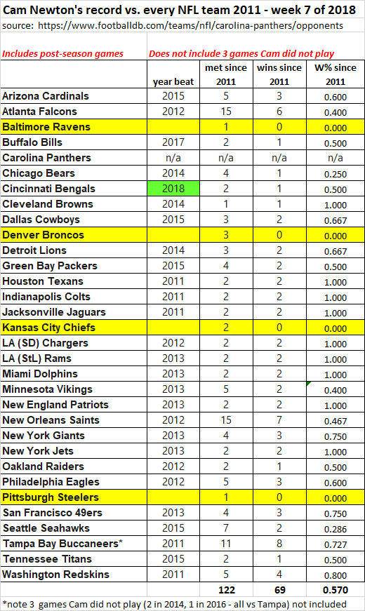 Someone on Reddit posted that there are only 4 teams Cam has not yet beaten in his career (excluding the Panthers, of course)