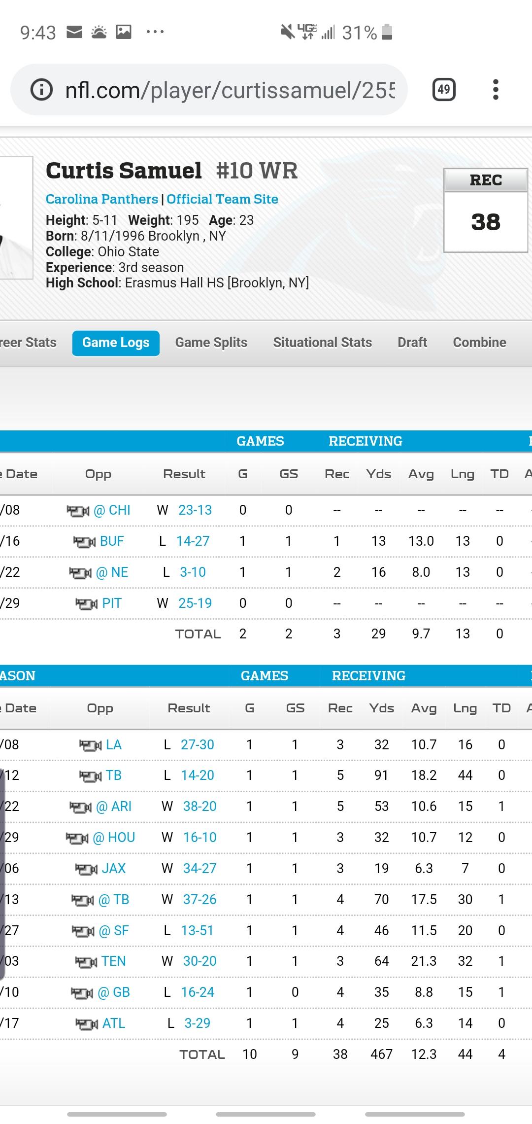 Now, we know why there were so much hype about Curtis Samuel in camp. All the veteran dbs couldn’t get him to listen to them last year (All or Nothing). It’s proving right now that the kid just don’t want to be a professional but depending on talents alone.