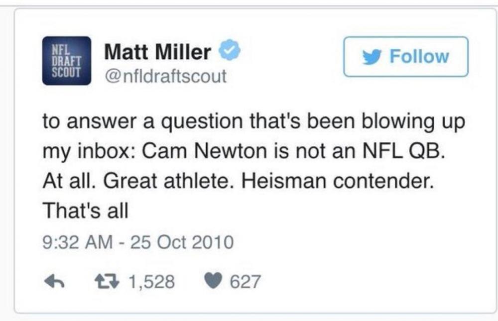 Also keeping Cam hurts our chances at a top QB next year. I hope the Panthers know what they are doing.
