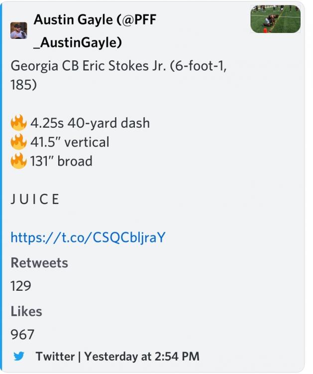 I keep seeing Chuba Hubbard hanging around in the round 3 in mocks.  Seems strange to me with his size and speed.  If he goes that late someone if gonna be really happy.  Dude can fly.