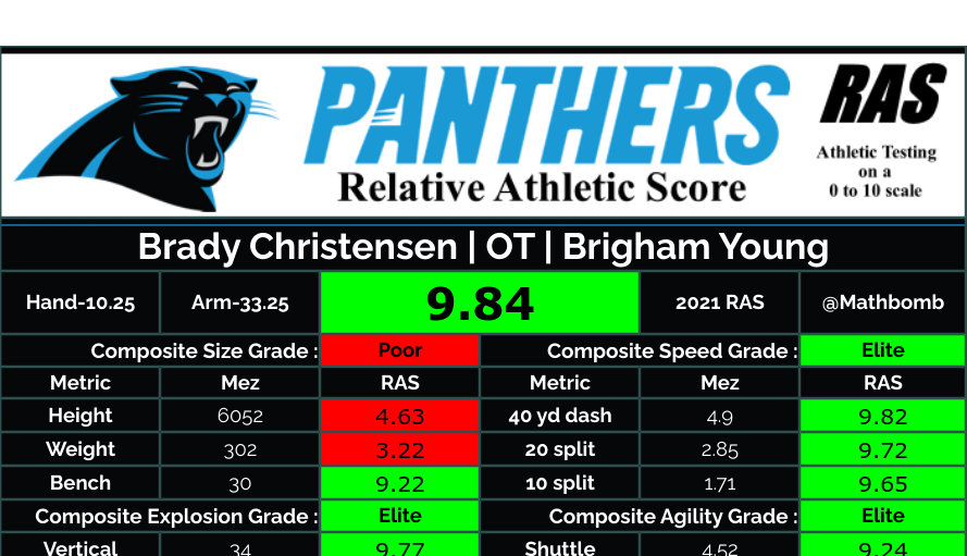 I saw Brady play in HS.  A rare athlete who excelled in Baseball, Basketball, and Football. I saw him steal a ball in HS, beat gaurds down the floor and dunk it so hard the basket shook for 30 seconds.  He is an athlete, who can protect Sam.  Great work ethic, team first, kind of man. He will love Charlotte, and they will love him. He is a first team All-American and a steal in the third round.