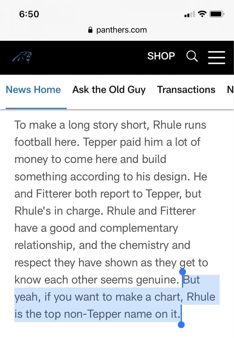 Well some of that is partially true. Like Rhule can't be fired by Fitterer which is how it usually goes with the GM on top. Rhule has more authority than most HCs and certainly more than 1st time NFL head coaches. Fitterer clearly knows his poo though.