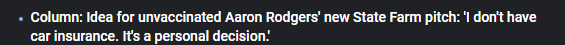 Rodgers is a great QB, but he's a fuging idiot when it comes to vaccines and COVID cures.  What's worse is he is perpetuating ignorance and conspiracy theories on a national scale.