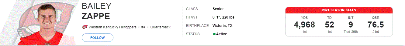 You are the first person I’ve seen with this take? 40 TDs to 7 INTs 67.7% completion and over 4000 passing yards breaking Marino’s record at Pitt. I’ve seen the one year wonder and limited athletic ability arguments, but reading the field appears to be a strength.