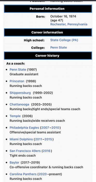 There are...were five coaches on staff who had no direct or indirect connection to Matt Rhule. Brady was the highest ranking of them.