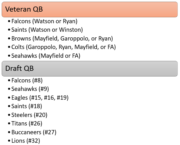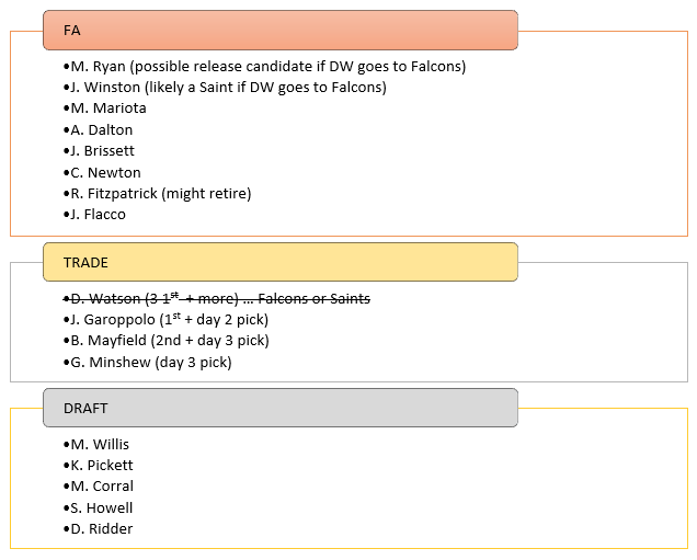 Of the free agents, Mariota has the most upside but if we're drafting a QB, I'd think we'd want Dalton or Fitzpatrick as a mentor.