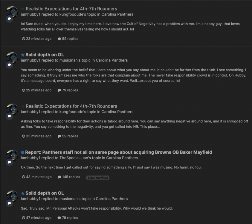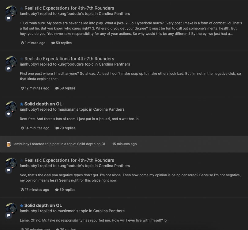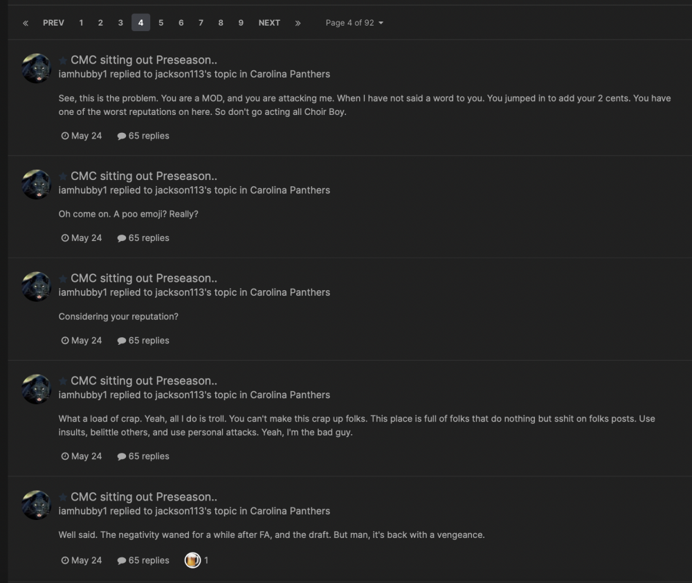 • If Ron had been given Bryce as his QB what happens though?  And Ron had an excellent track record as DC and had run the 34 and the 43 both successfully in the league. He had some really good defenses.  Add in, how did he do under Tepper with a damaged Cam? it isn’t really close to a fair comparison.  Ron wasn’t a great HC either he was a guy that knew defense and had a great QB dumped in his lap.    As far as some of the other stuff in the thread I was hot about him not being suave with Rico but he has taken action, and people have pointed out decent reasons for being 2 games slow to make the change. And we won one of them.    I don’t know I have cooled off since Sunday and I wasn’t moved straight to fire him level of dissatisfaction, just decidedly unhappy with him.    I don’t really have a strong opinion either way but do think he was given a no win situation with Bryce. And he hasn’t done horribly with that aspect of it, given the unreasonable expectations of the assignment. It is the NFL version of a suicide mission.
