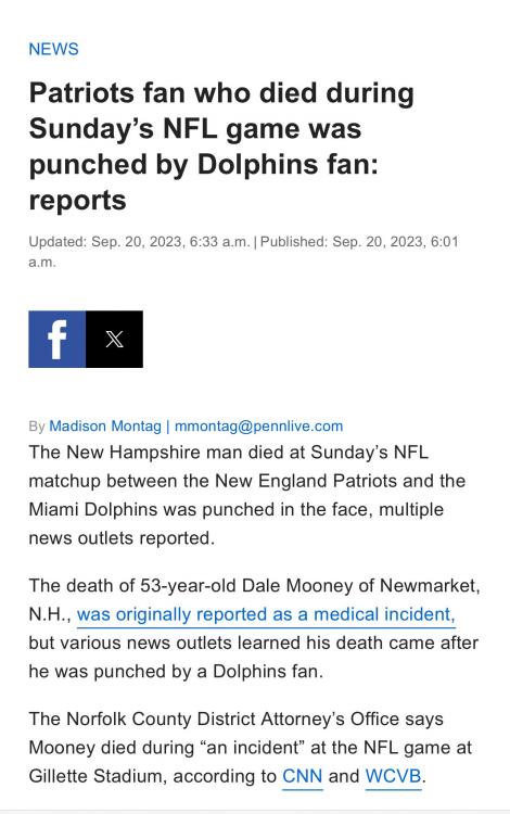 Fighting at BOA…. A fan just died at Foxboro