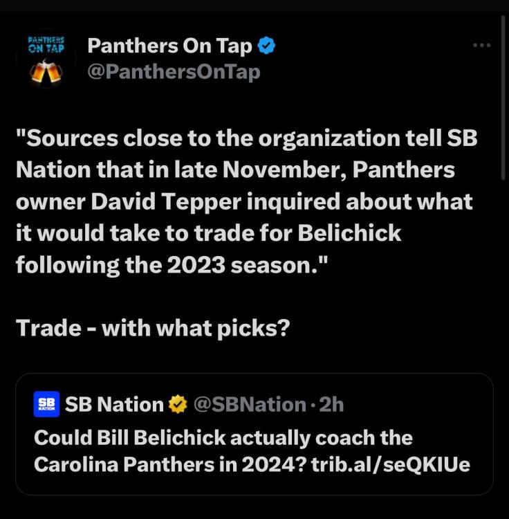 Still think Bill and his ego wants the all-time wins record and the only way I’d get on board with the hire is by first hiring a team President to oversee all football operations and a GM that will lead a new personnel department. Bill is welcome in Charlotte but solely as a head ball coach, he should not and cannot have full and complete roster control as he has currently in New England.
