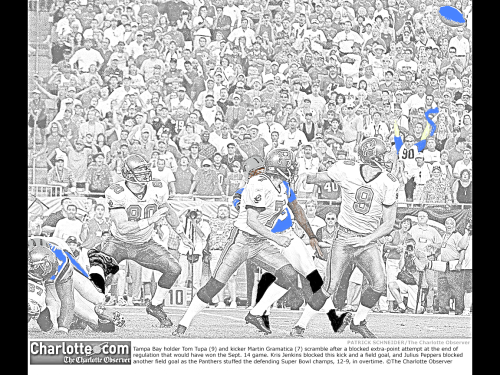 We had so many many classic games that season, like blocking 2 Martin Grammatica kicks to beat the arrogant bucs, beating Peyton Manning , the walk off 2 ot win against the greatest show on turf, DeShaun Foster willing his way into the endzine against Philly, Moose catching a TD pass and telling our doubters to hush that made the cover of Sports illustrated, to Jake going toe to toe, step for step with Brady , if we had won he would have been MVP