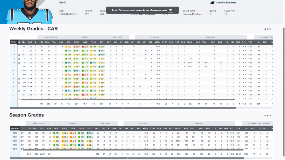 somehow he continues his 75+ overall PFF rating despite weeks of being between 65 and 55...