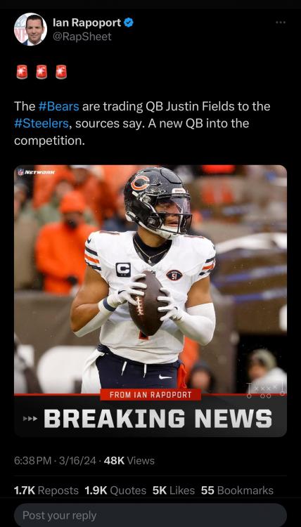 Sure, his odds aren't great at the moment to become a viable starter, but that's not exactly going out on a limb, but I like the approach to him and possible future success in Pittsburgh much better than in the Windy City. The fact is is that the Bears have been a historically dumb franchise and the Steelers have been a historically smart one.