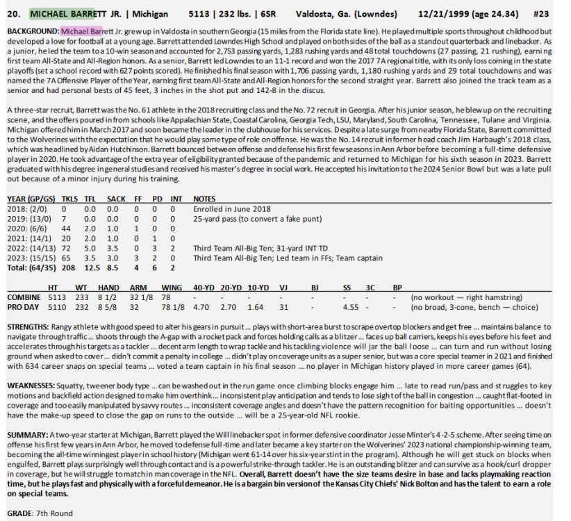 Surprisingly nice kick returner as a bonus! That was interesting upon popping on his highlights. I could see how he could be a Evero rotational blitzer/run stuffer in addition to special teams