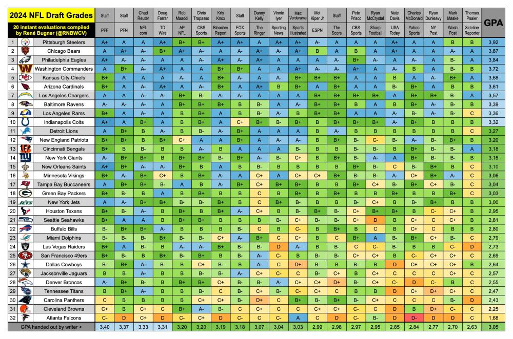 I gave it a B because we got a second for basically 2 5ths.  I like X, Brooks, and Sanders, the LB was a head scratcher to me. If you switch Sanders and Wallace, it makes more sense in my head.  The offseason as a whole I would give an A.