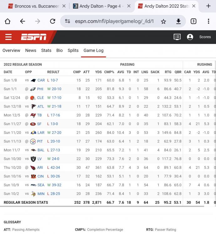 We don't want Andy throwing the ball a lot. He's the type where he looks good and everything is going fine and then he throws a brainless pick. We need a little razzle dazzle and run the ball. The defense has got to keep the score lowish because if we have to throw a lot to try and catch up we're cooked.