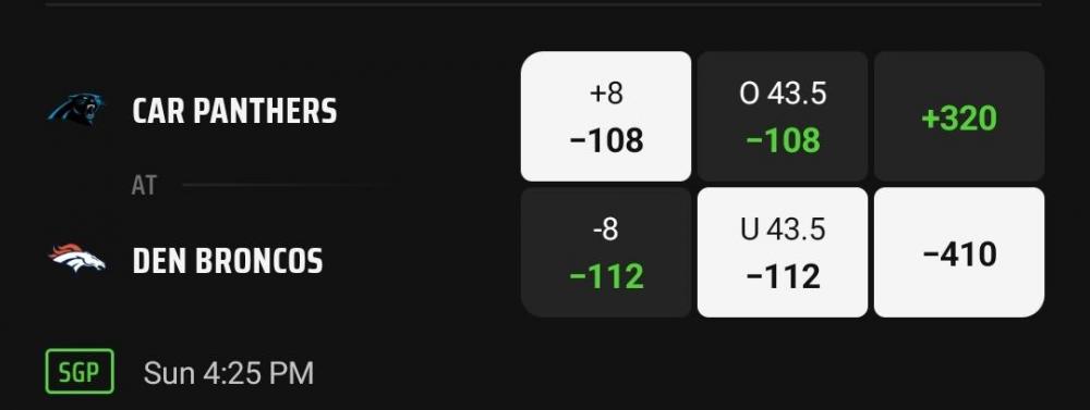 There are definite times where as a sports fan you can see the perfect storm. The raiders game being one of them. There was a QB change, raiders had a weak offense, weak defense. A parlay was paying out at +850 for Dalton, Chuba, and Johnson to all have TDs. It is the safest bet going forward, because these are professionals and the Panthers have guys who could possibly be good backups and special teamers in the future starting at important positions.