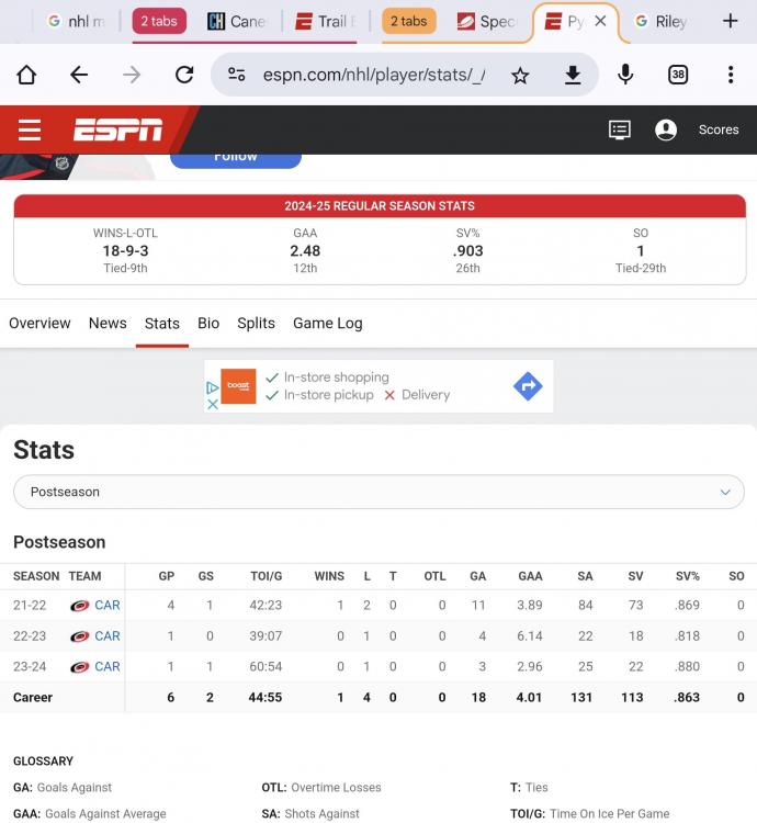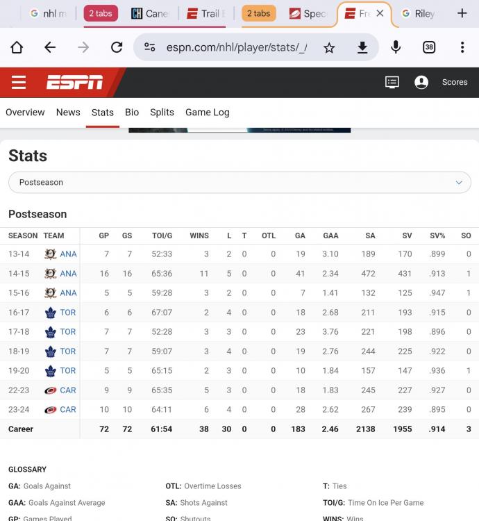 Every year but two years ago vs Florida in the ECF it has been. We scored at Will AND had great goalie play the 2022-23 playoffs. Scoring just dried up vs florida. All were 1,goal games.  Last year, we had the scoring but rod ran freddie into the ground. AND our PK just poo the bed.  This year, I really hope it’s a 60/40 or 70/30 split between Freddie and koochie. Freddie gets two games koochie gets 1.  Keep him healthy.   The canes will make a deep run if we get scoring and goalie play.