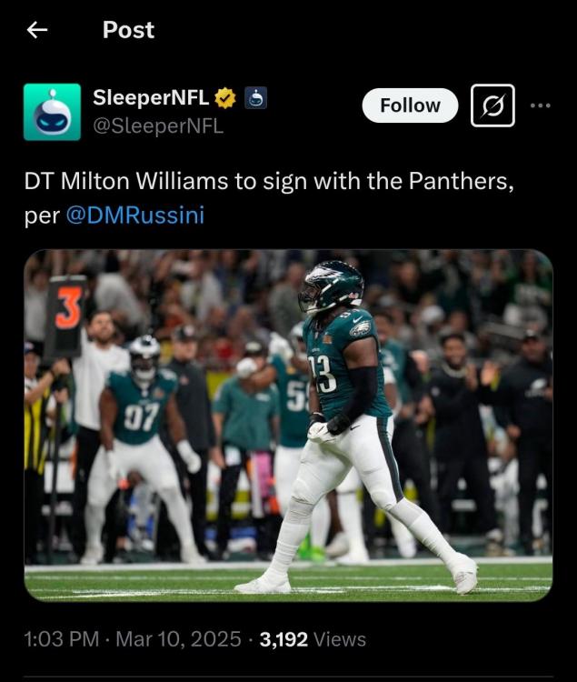 Milton Williams in talks (Schefter says it’s a deal, Russini says wait wait, drama, all the feels)