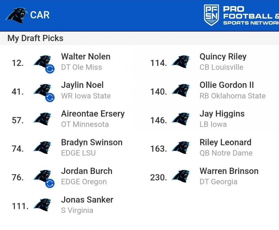 “But there’s one team that’s been a little more aggressive than the rest and that’s the #Panthers, who have the eighth pick. My understanding is they’re willing to take a discount to move down in an effort to try to build up their war chest of picks. It’s interesting, too, because Carolina isn’t hurting for volume with two fourths and three fifths.”