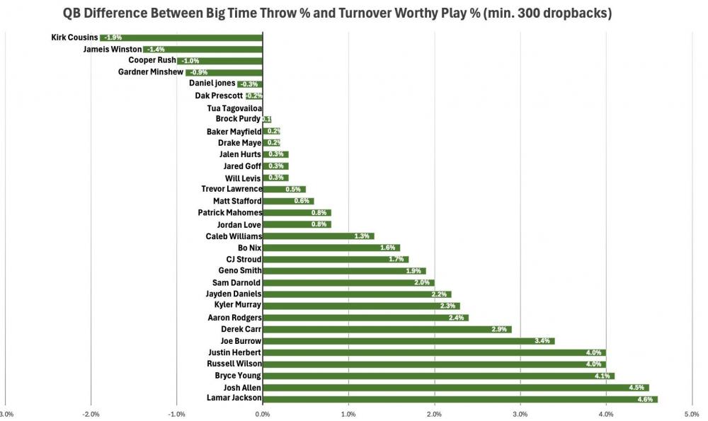 Don't really care about stats. Stats can be very misleading. T2G is a perfect example of YAC making a QB look stats good. Bryce can make 40 perfect passes with 40 drops and the stat lines show he had an awful game.