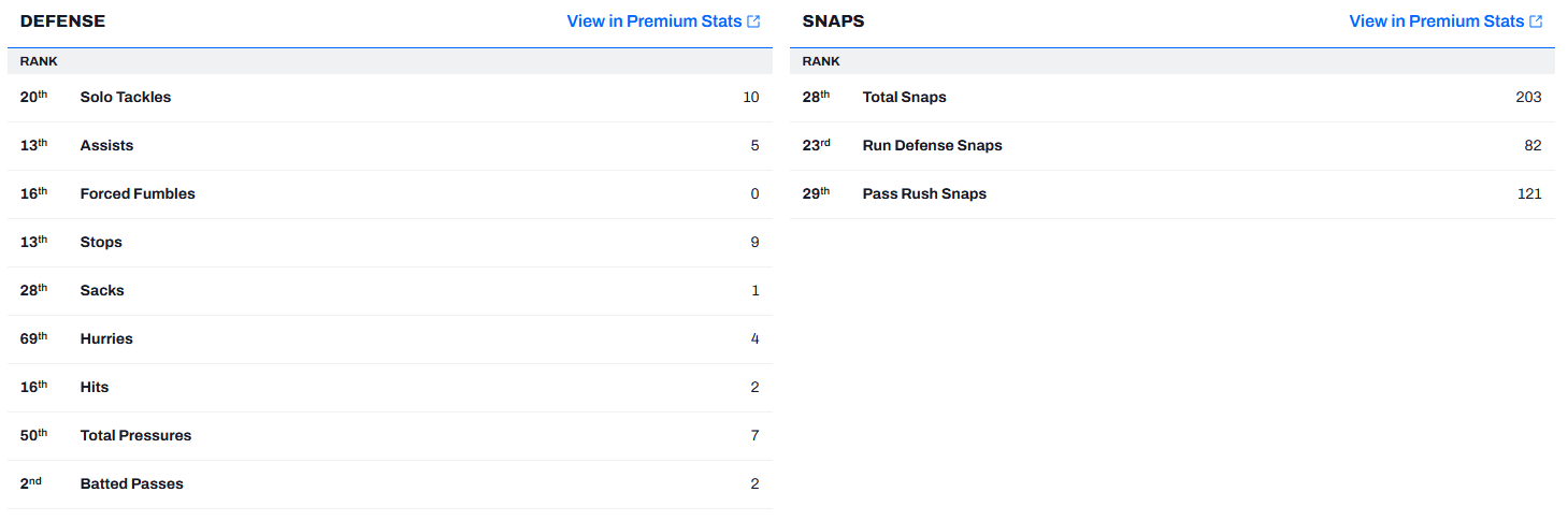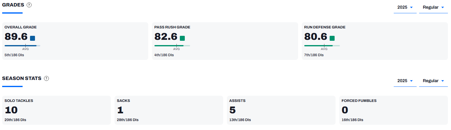 Agreed. I do think our free agent acquisitions + our safeties being better against the run have helped also. If we can figure out our pass coverage issues in the middle third of the field, I would actually like our overall defense (at least like it enough).