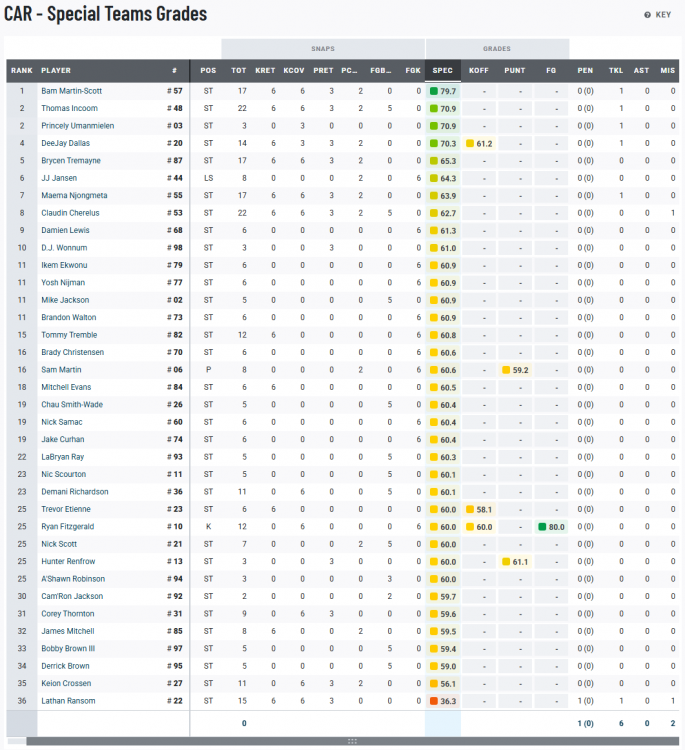 I thought Legette would be higher too. He's normally pretty good blocking for the run.