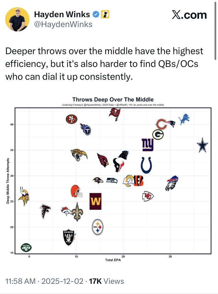 Yeah dog I respect your posts but I cannot get on board with this assessment.  His mechanics are poo and he he struggles to see the field.  I mean even player loving Aikman pointed this out last week
