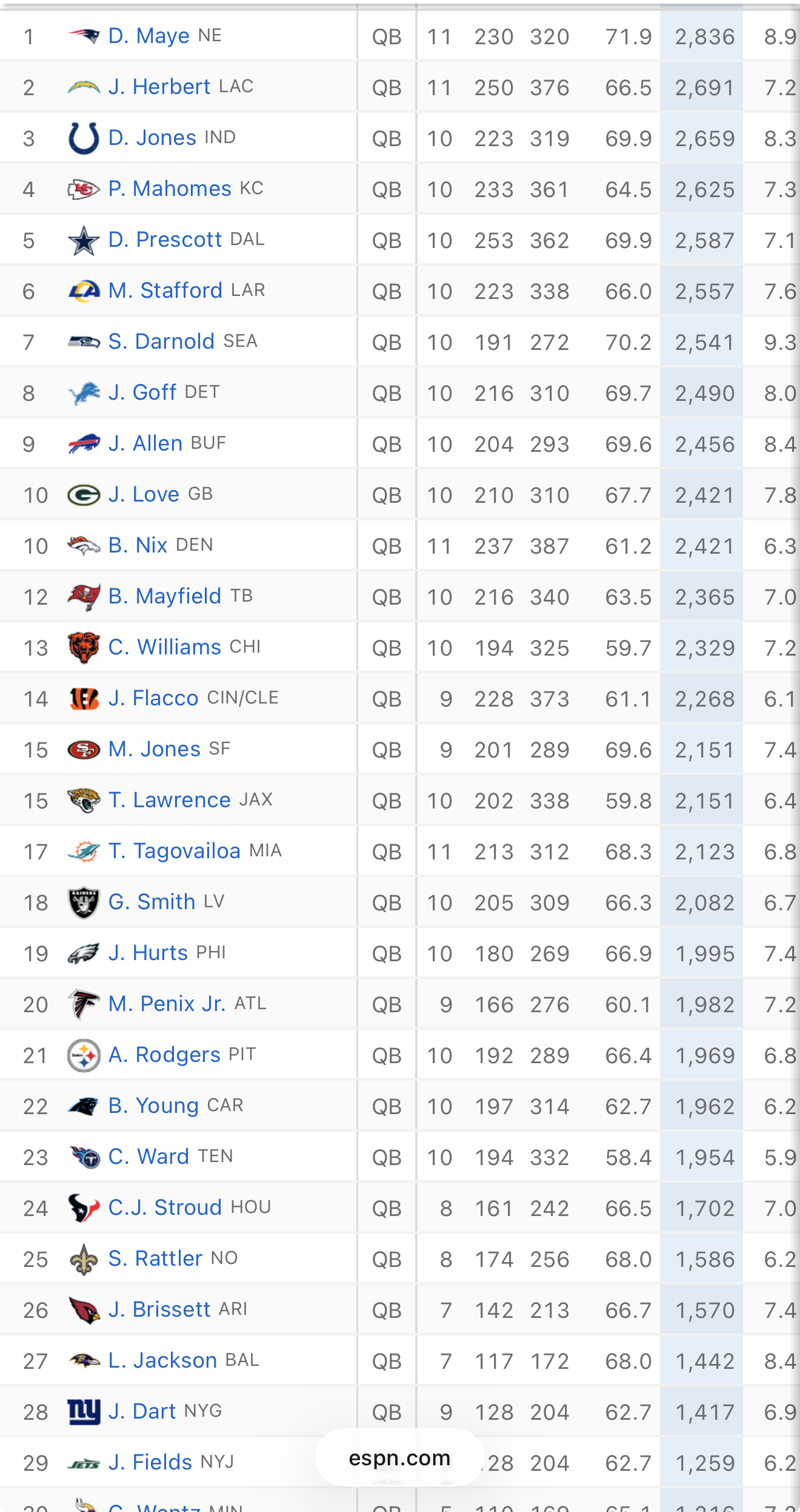 No. Respectfully. Too many names to type. But I will do this. He is at 22 on this list. I would take Brissett, played less game a putting up big numbers. Stroud. Lamar. And Dart.  So 26.