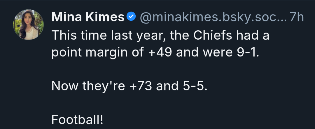 An ESPN writer had a good breakdown of teams that were likely to come back to earth(KC and Redskins were two of them) based on outlier results in 2024 in close games. I think that has a lot to do with it.