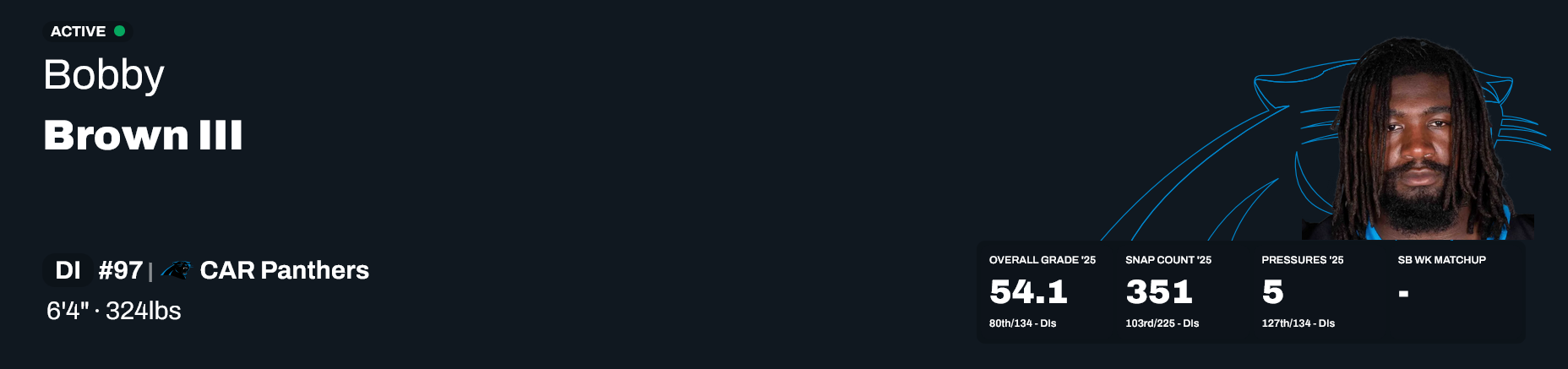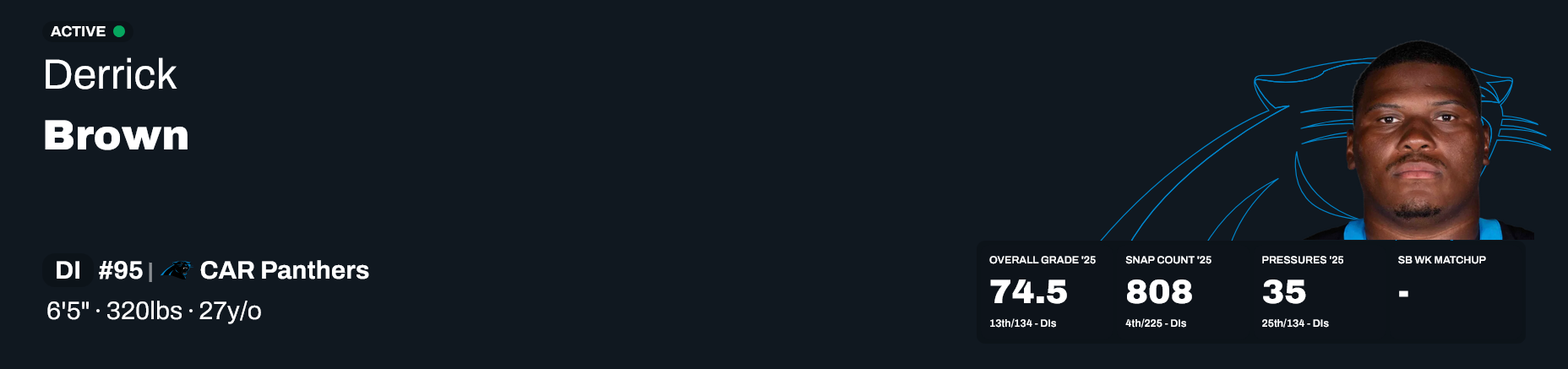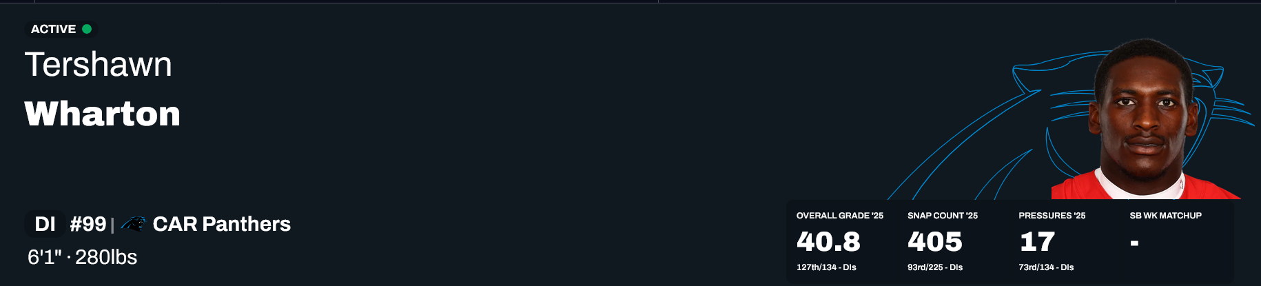 Because this DL is completely reliant on Brown being available and being a stud. Without him we were the worst D in history. The Wharton signing last year reeked of desperation. He just isn't a great fit for us schematically and I think we panicked a little bit when we missed out on Milton Williams who would have been a great fit.